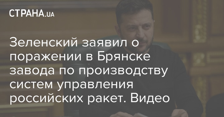 Зеленский заявил о поражении в Брянске завода по производству систем управления для всех российских ракет