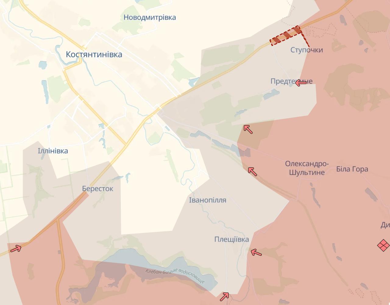 Также армия РФ сейчас продвинулась под Константиновкой и около границы Донецкой и Днепропетровской областей в районе Удачного, сообщает Deep State.
