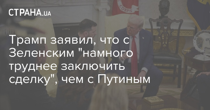 Президент США Дональд Трамп заявил, что с украинским главой Владимиром Зеленским намного труднее заключить сделку, чем с президентом РФ Владимиром Путиным.