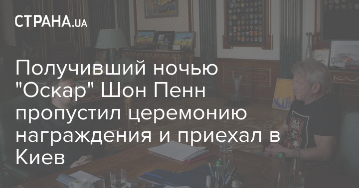 Американский актер Шон Пенн, которому сегодня ночью Американская академия кинематографических искусств и наук присудила премию "Оскар", не присутствовал на церемонии награждения. Он прибыл в Украину и уже встретился с Владимиром Зеленским.