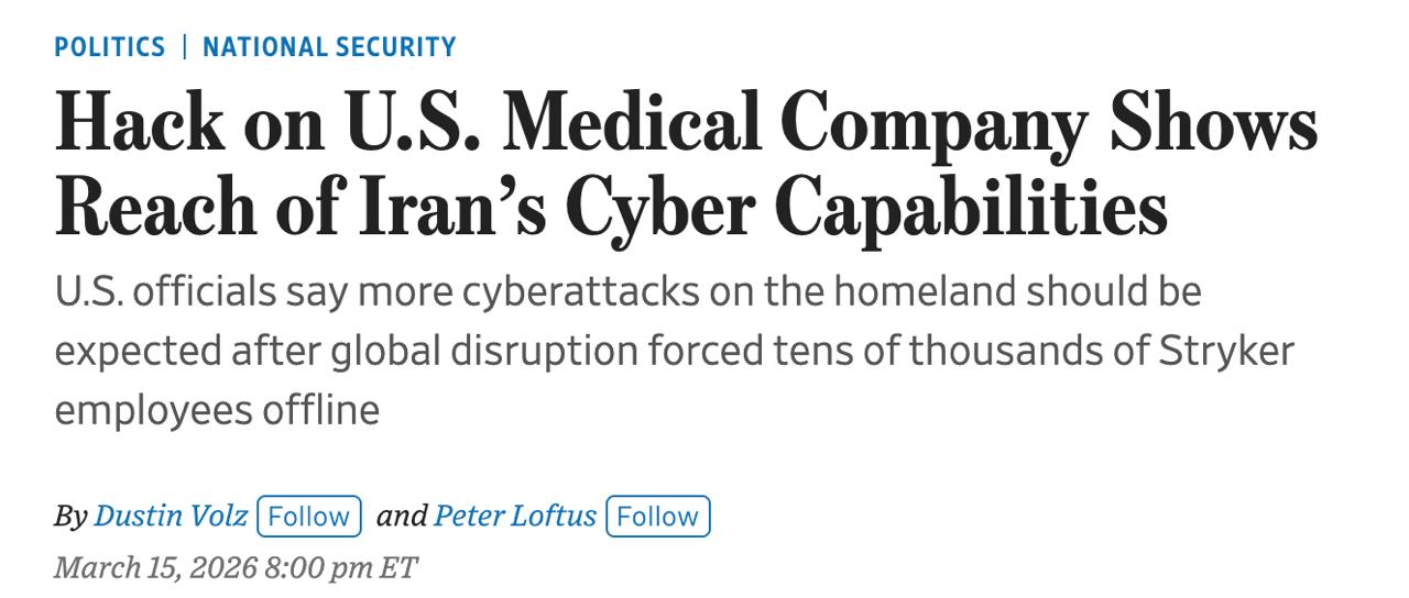 Издание пишет, что начались серьёзные перебои в работе глобальной компании по производству медицинского оборудования Stryker. Инцидент ограничился её внутренними системами Microsoft.