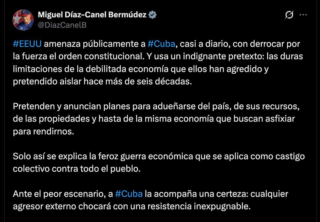 8.13 Куба готова к сопротивлению в случае нападения США, заявил ее президент Мигель Диас-Канель.