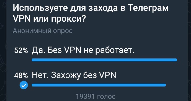 При этом российские телеграм-каналы пишут, что в целом примерно у половины их читателей мессенджер работает даже без ВПН.