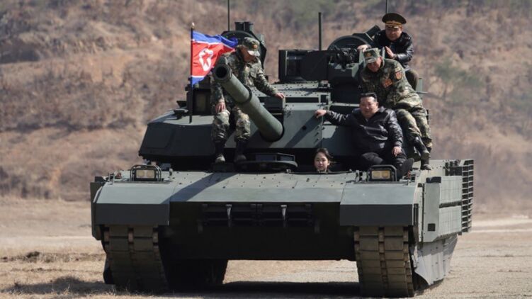 Лидер КНДР Ким Чен Ын со своей дочерью прокатился на новейшем северокорейском танке. Фото
