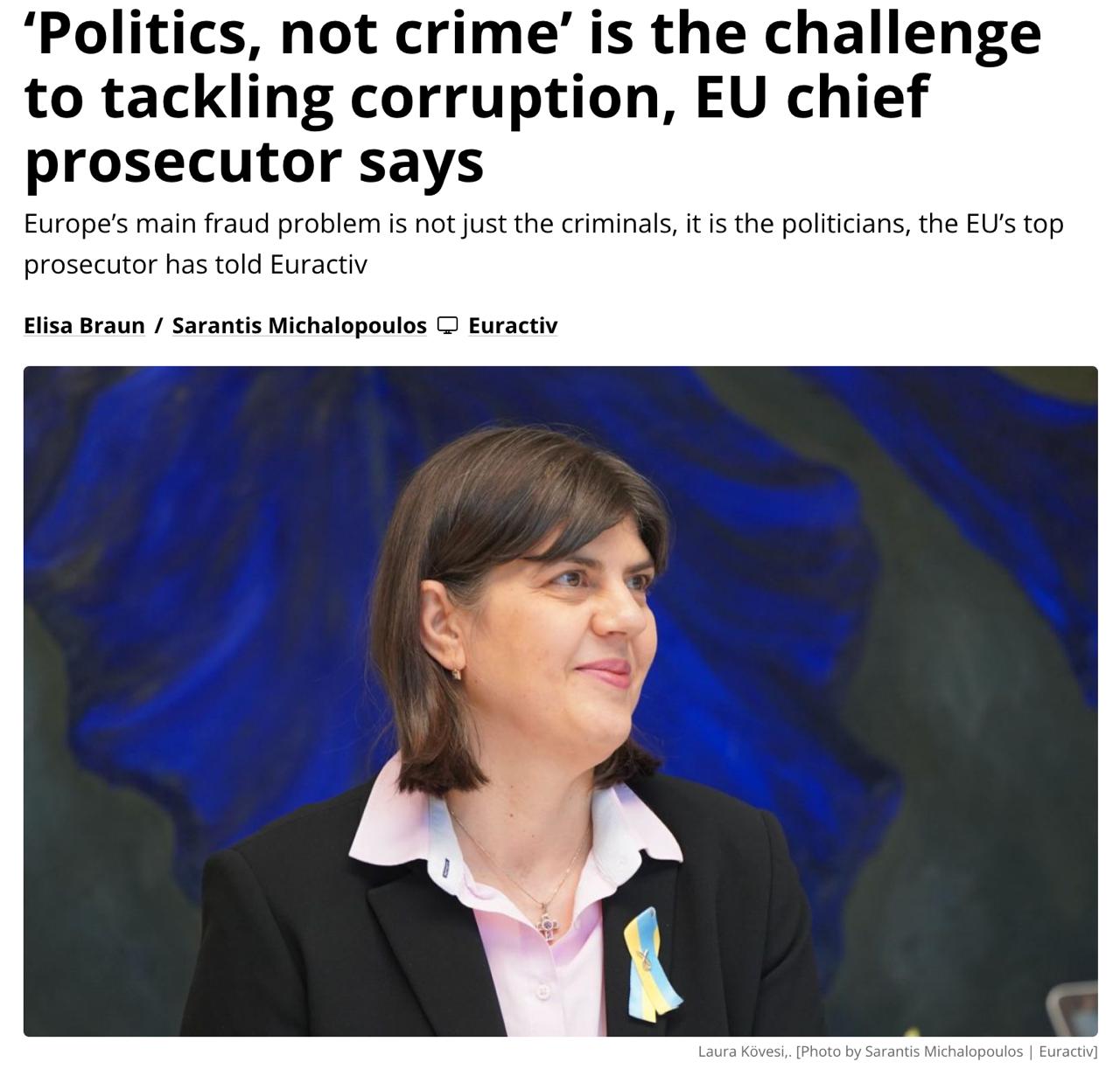 Главный прокурор Европейского Союза Лаура Ковеши обвинила руководство ЕС в покрывательстве коррупции.
