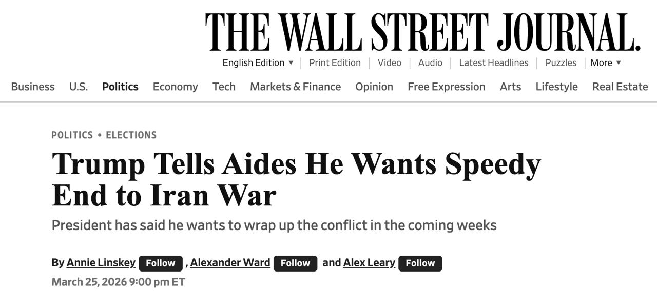 В целом президент США говорит советникам, что хочет закончить конфликт в ближайшие недели и что война подходит к концу. К его поездке в Китай 14 мая война уже должна закончиться.