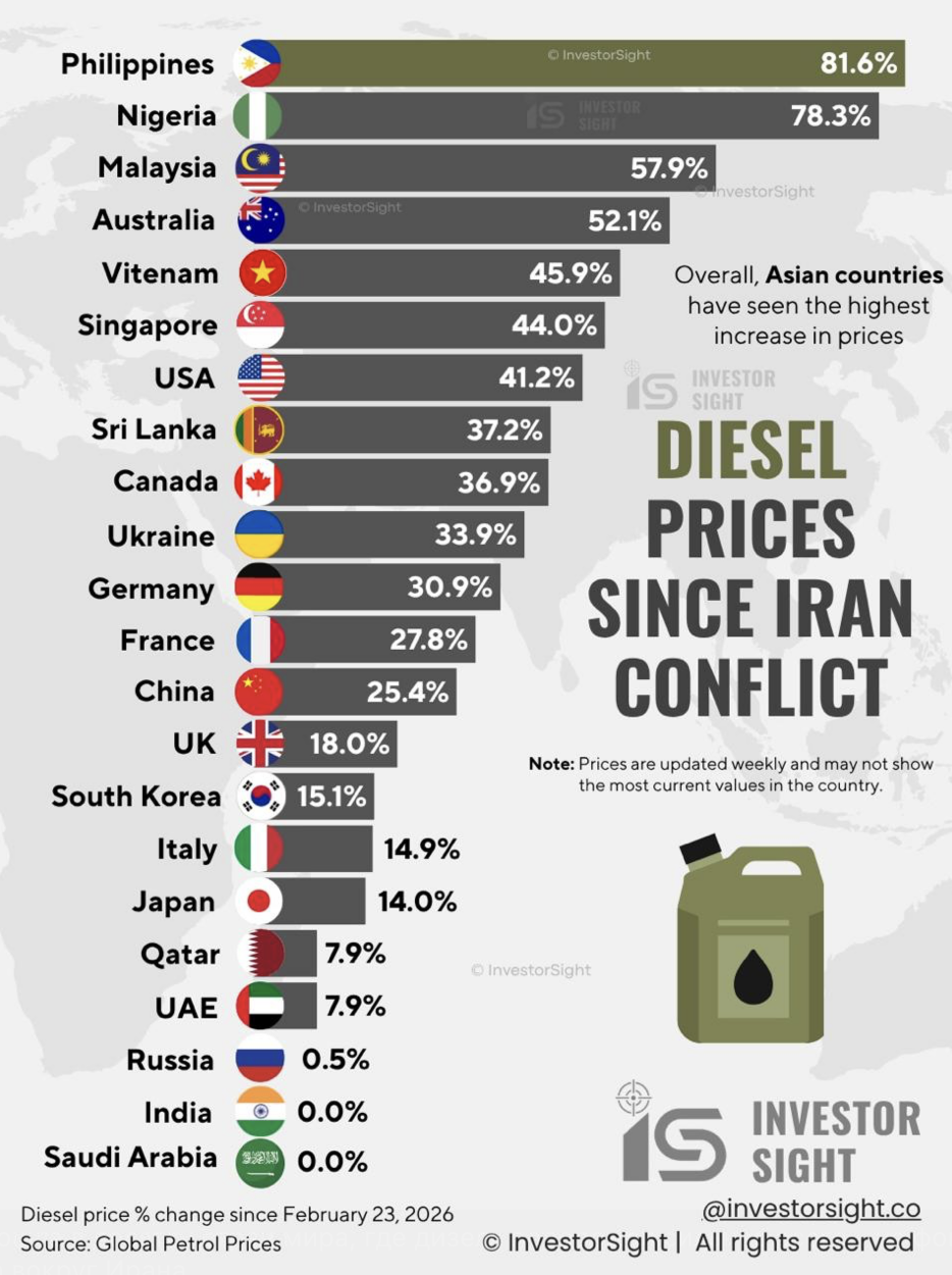 09:46 Украина вошла в десятку стран мира, где дизель подорожал сильнее всего - на фоне конфликта вокруг Ирана.