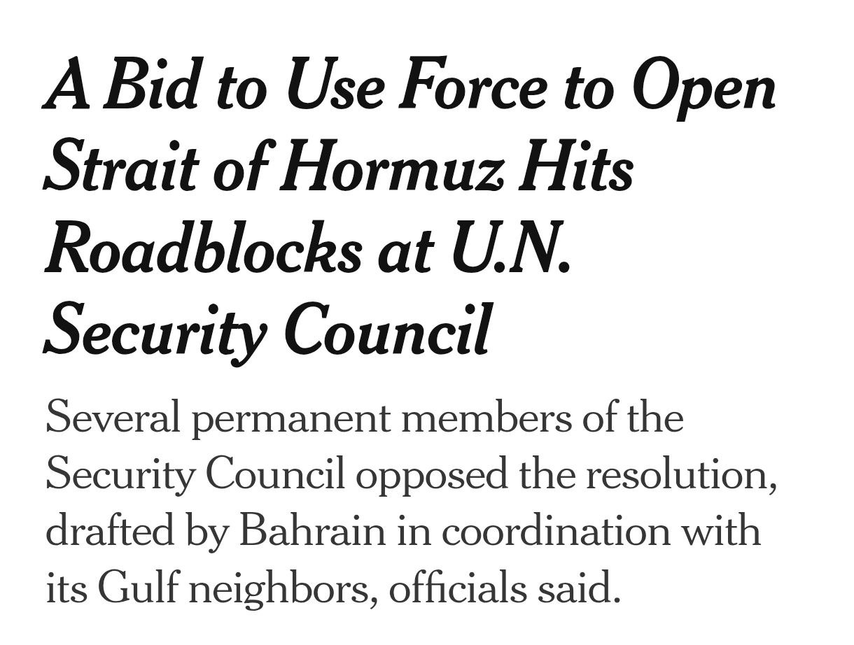 Представители России, Китая и Франции заблокировали попытки арабских стран добиться санкции Совета Безопасности ООН на силовое разблокирование Ормузского пролива. Делегаты трех государств выступили против формулировок, разрешающих применение силы против Ирана.