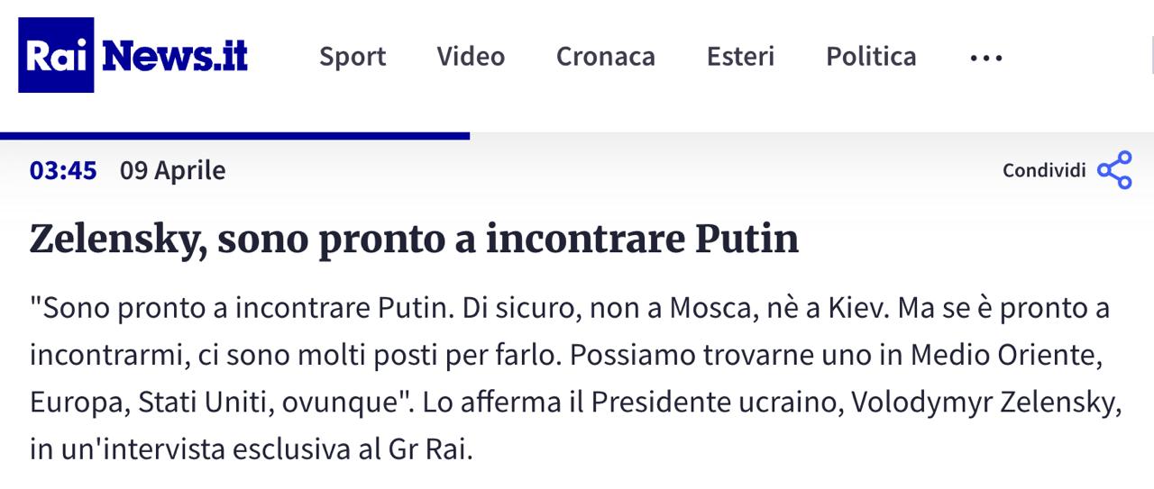 Свое предложение Зеленский озвучил в интервью итальянскому телеканалу RAI.