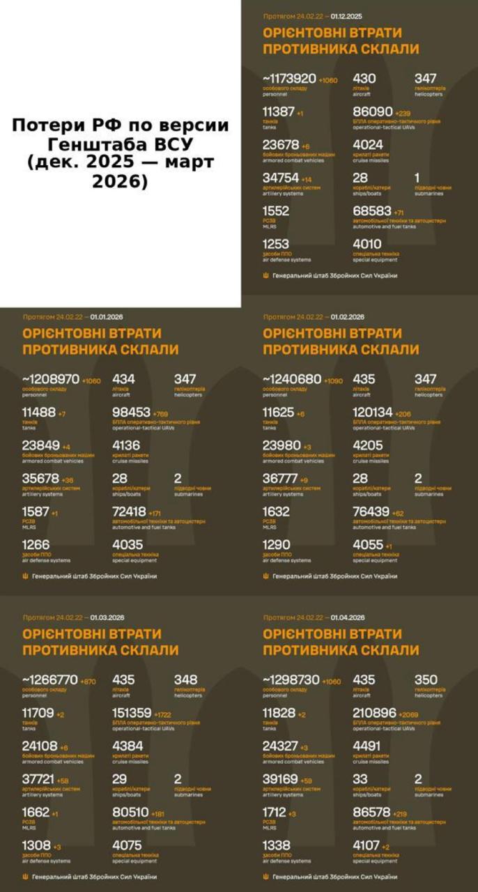 Но интересно другое: названный президентом мартовский показатель не соответствует данным Генерального штаба Вооруженных сил Украины. Он сообщил, что по состоянию на 1 апреля у россиян 1 298 730 погибших и раненых. А месяцем ранее, 1 марта, упоминалось о 1 266 770 человек. То есть разница составила 31 960 человек, а не "более 35 тысяч", как заявлял президент.