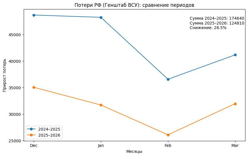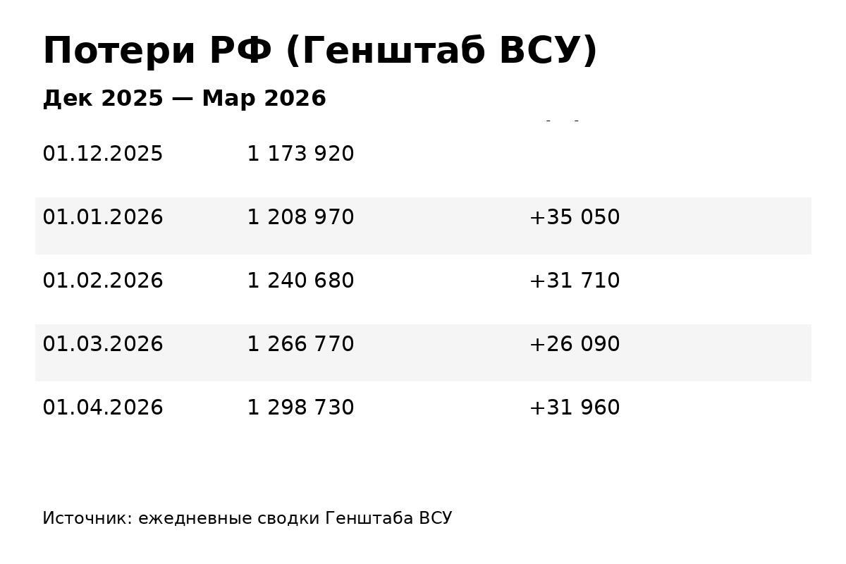 Если же сопоставить суммарные потери РФ за оба периода, то их падение этой зимой и с учетом марта, по данным Генштаба, составило 28,5%.