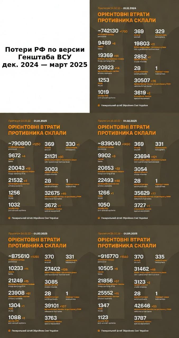 При этом все эти цифры вообще не являются рекордными, если исходить из данных Генштаба ВСУ годичной давности, с декабря 2024 года по март 2025-го.
