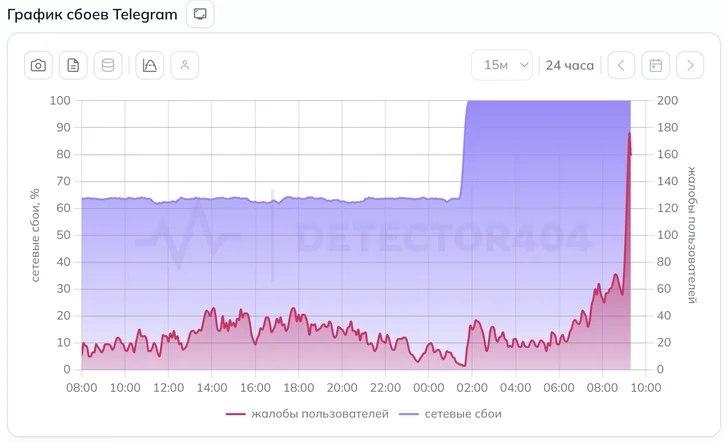 Тем временем блокировка Telegram в России сегодня утром достигла 95% - максимума за всё время, сообщают российские мониторинговые проекты.