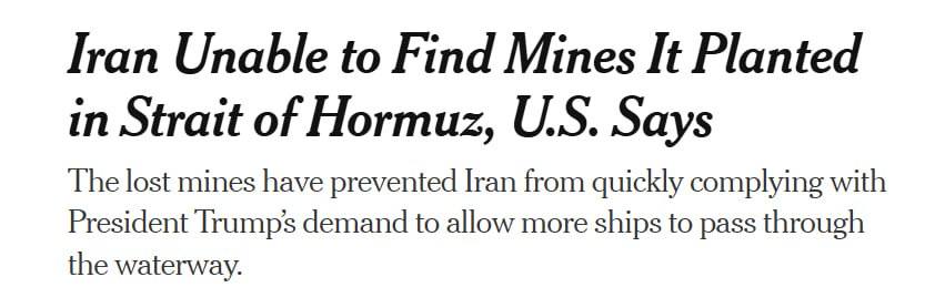В то же время, пишет NYT, разминирование значительно сложнее, чем установка мин. США обладают ограниченными возможностями в этой сфере и в основном используют прибрежные боевые корабли с оборудованием для траления. При этом Иран также не располагает средствами для быстрого разминирования, включая даже те мины, которые установил сам.