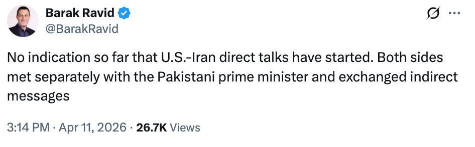В то же время журналист Барак Равид заявляет, что нет никаких признаков начала прямых переговоров между США и Ираном. По его словам, обе стороны лишь встретились с премьер-министром Пакистана Шахбазом Шарифом, и передали сообщения друг другу через него.