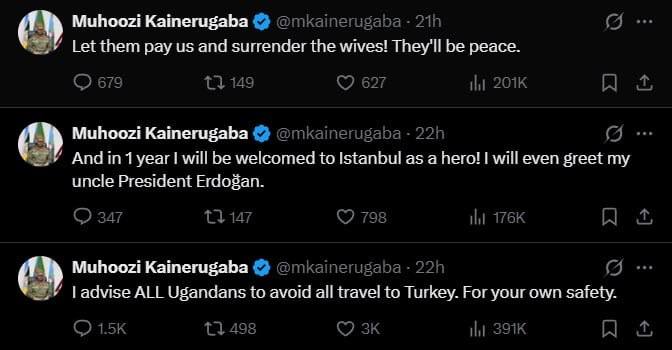 Главнокомандующий армией страны и сын президента Уганды Йовери Мусевени выложил в сеть серию антитурецких заявлений.