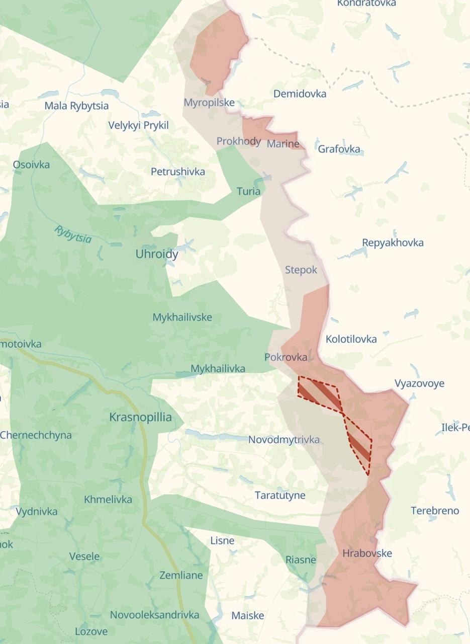 Но как видим, занятый российский плацдарм в Сумской области к настоящему времени не только не ликвидирован, но и расширяется.