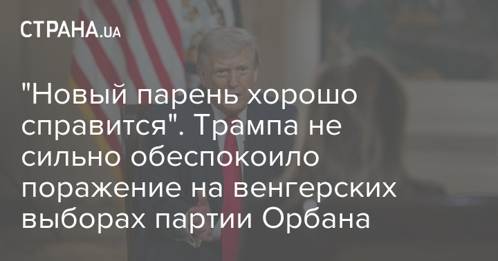 Президент США Дональд Трамп заявил, что его не беспокоит поражение на парламентских выборах в Венгрии 12 апреля партии премьер-министра Виктора Орбана "Фидес". Как заявил глава Белого дома, Орбан сильно отставал, к тому же его потенциальный преемник Петер Мадьяр должен "хорошо справиться".