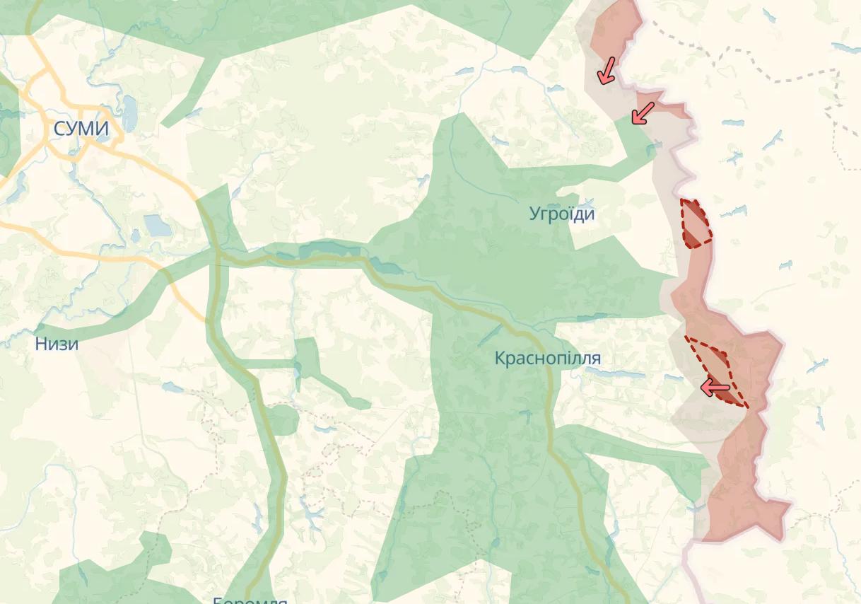 На фронте армия РФ продвинулась еще на двух участках на границе Сумской области: около Новодмитровки и Степка, сообщает Deep State. Подробнее о наступлении РФ на этом участке мы писали здесь.