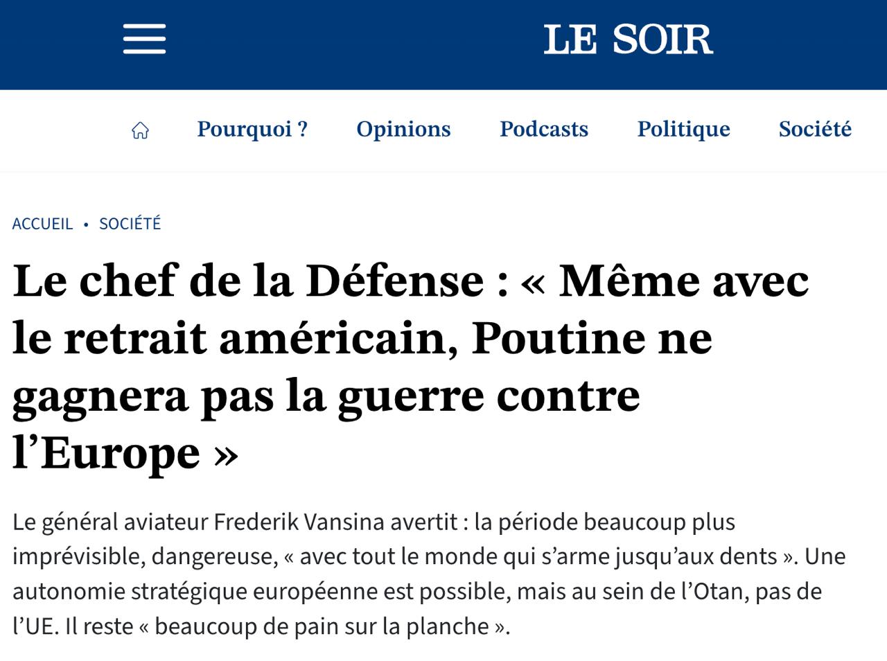 "К 2030 году, если мы продолжим текущую траекторию, мы будем значительно сильнее, чем сегодня. А к 2035 году, я считаю, эта стратегическая автономия Европы станет достижимой - при условии, что бюджеты продолжат расти. 2030 год станет трудным периодом для Европы. К тому времени, будем надеяться, война в Украине уже закончится. Россия останется с этой армией в 650–700 тысяч закалённых бойцов. Поэтому к 2030 году мы должны быть в состоянии сказать (президенту РФ - Ред.) Владимиру Путину, что даже без американцев он не выиграет войну против Европы. У нас ещё есть несколько лет. Благодаря мужеству и крови украинцев, которые покупают нам это время. Именно поэтому мы так сильно их поддерживаем", - заявил Вансина.