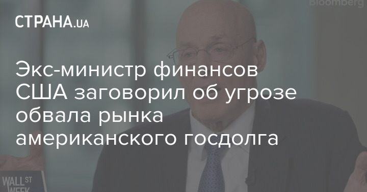 Бывший министр финансов США Генри Полсон заявил об угрозе обвала рынка американского государственного долга, за счет которого Штаты финансируют дефицит бюджета.