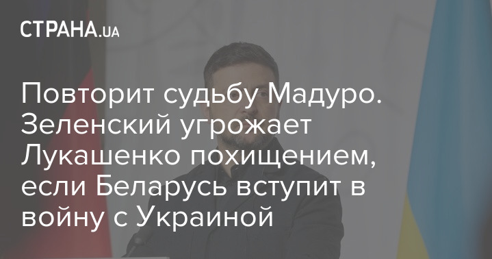Повторит судьбу Мадуро. Зеленский угрожает Лукашенко похищением, если Беларусь вступит в войну с Украиной