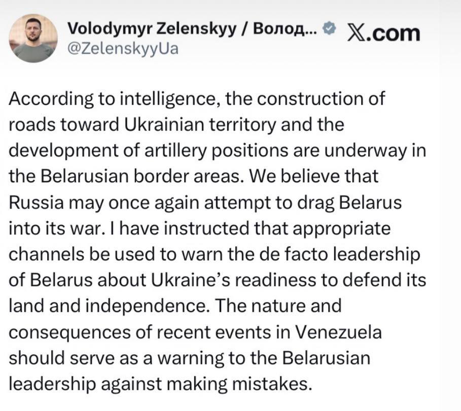 Напомним, Зеленский заявил, что Беларусь может напасть на Украину.
