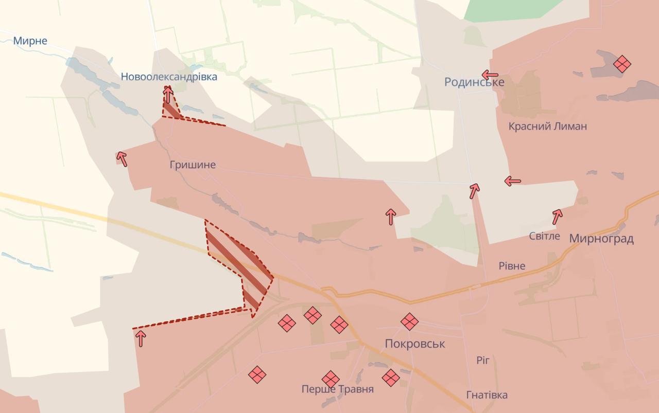 Армия РФ продвинулась около Гришино и Новоалександровки северо-западнее Покровска, сообщает DeepState.