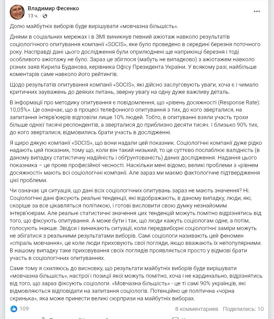 На вопросы социологов в Украине отвечает 10% населения. Фесенко поставил под сомнения опросы