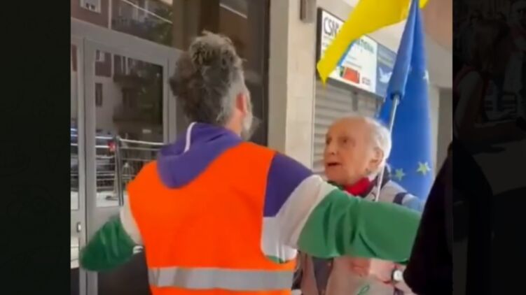 Отдельный инцидент произошёл в городе Болонье – там пожилого мужчину с украинским флагом не допустили к участию в акции.