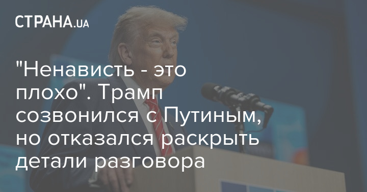 "Ненависть - это плохо". Трамп созвонился с Путиным, но отказался раскрыть детали разговора