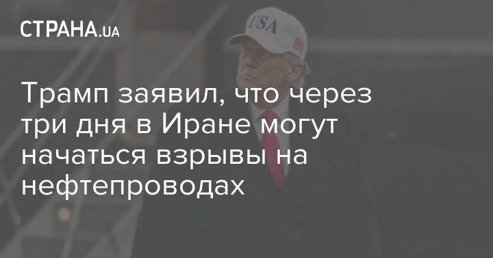 Трамп заявил, что через три дня в Иране могут начаться взрывы на нефтепроводах