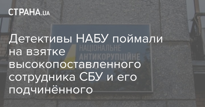 Детективы НАБУ поймали на взятке высокопоставленного сотрудника СБУ и его подчинённого
