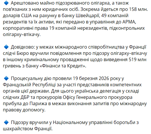 А недавно бизнесмен получил еще одно подозрение в Париже по делу о выводе более 1,5 млрд грн из того же банка. Генпрокурор Украины Руслан Кравченко говорил, что это стало возможным благодаря сотрудничеству украинских и французских правоохранителей.