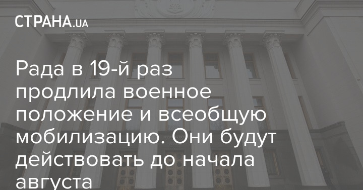 Рада в 19-й раз продлила военное положение и всеобщую мобилизацию. Они будут действовать до начала августа
