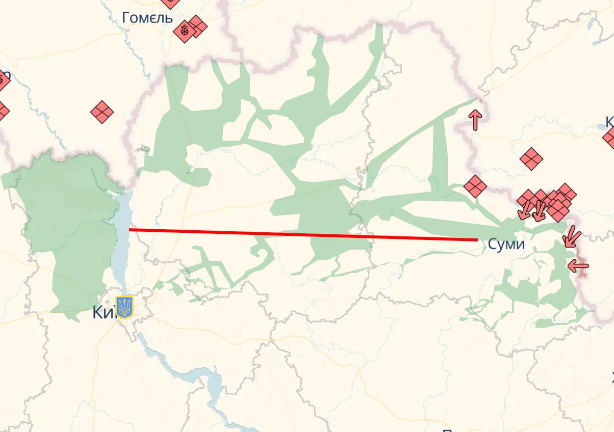 Отметим, что за такой линией обороны оказывается Чернигов, большая часть Черниговской и половина Сумской областей.