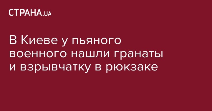В Киеве у пьяного военного нашли гранаты и взрывчатку в рюкзаке