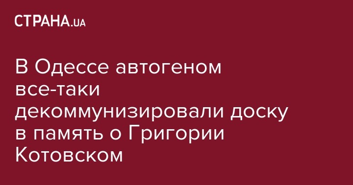 Как сообщала "Страна", в Одессе не смогли декоммунизировать памятную доску Котовскому. Два дня назад коммунальщики уже пытались избавиться от Котовского. Но барельеф не смогли снять со тсены, а жители дома начали бояться за безопасность здания и запретили демонтировать памятн