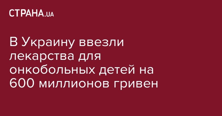 В Украину ввезли лекарства для онкобольных детей на 600 миллионов гривен