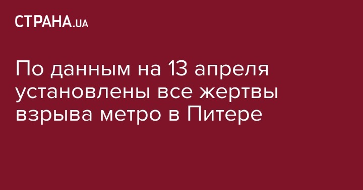 По данным на 13 апреля установлены все жертвы взрыва метро в Питере