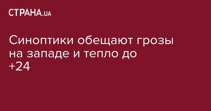 В четверг, 27 апреля на западе Украины пройдут грозовые дожди. Днем в регионах потеплеет до +18...+24. Об этом говорит прогноз Укргидрометцентра.
