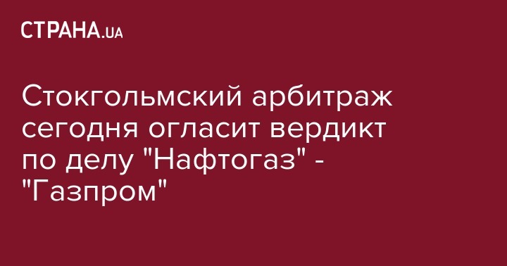 В воскресенье, 30 апреля, будет оглашен вердикт Арбитражного института Торговой палаты Стокгольма по делу "Нафтогаз" - "Газпром". Об этом сообщает "Укринформ".