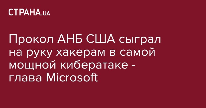 Прокол АНБ США сыграл на руку хакерам в самой мощной кибератаке - глава Microsoft