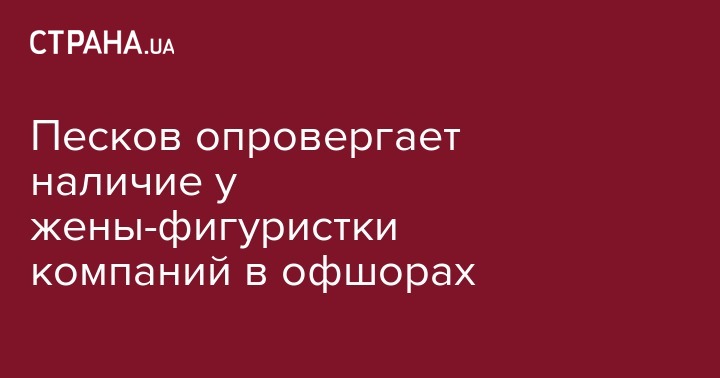 Пресс-секретарь президента России Дмитрий Песков отрицает содержащуюся в "панамских документах" информацию о том, что его супруга, олимпийская чемпионка Татьяна Навка, владеет офшорными компаниями. Об этом сегодня сообщила ВВС.