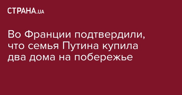 Во Франции подтвердили, что семья Путина купила два дома на побережье
