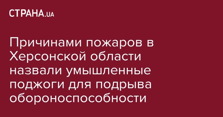 Причинами пожаров в Херсонской области назвали умышленные поджоги для подрыва обороноспособности