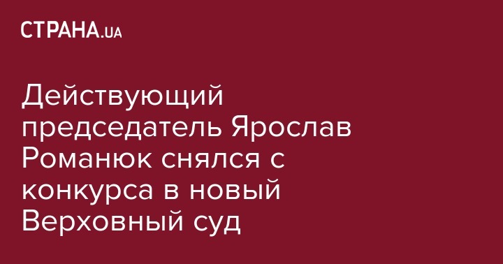 Действующий председатель Ярослав Романюк снялся с конкурса в новый Верховный суд