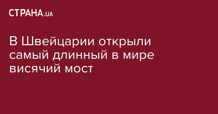 В швейцарском кантоне Вале, сегодня, 29 июля, открылся самый длинный в мире висячий мост для пешеходов - его длина почти 500 м, сообщает 20 Minuten.