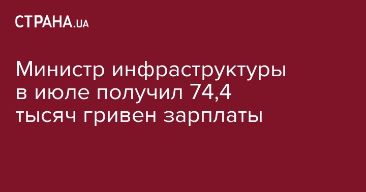 Министр инфраструктуры в июле получил 74,4 тысяч гривен зарплаты