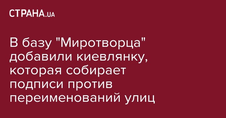 В базе сайта "Миротворец" появилась анкета на киевлянку Светлану Пикту, которую назвали "пособницей террористов" после того, как она собирала подписи против переименования улиц в честь участников ОУН-УПА.